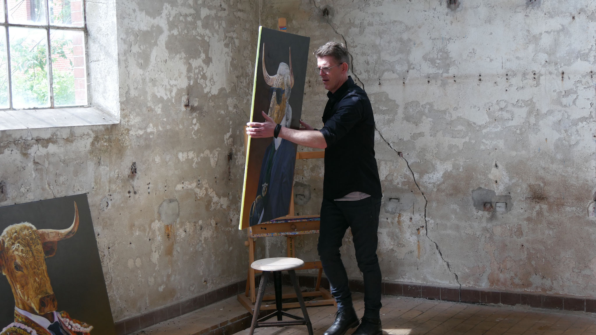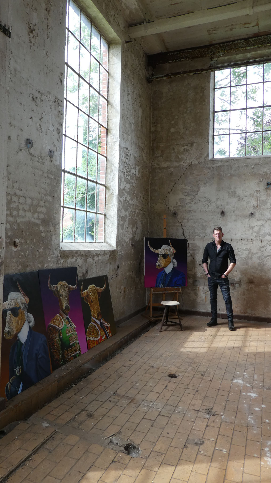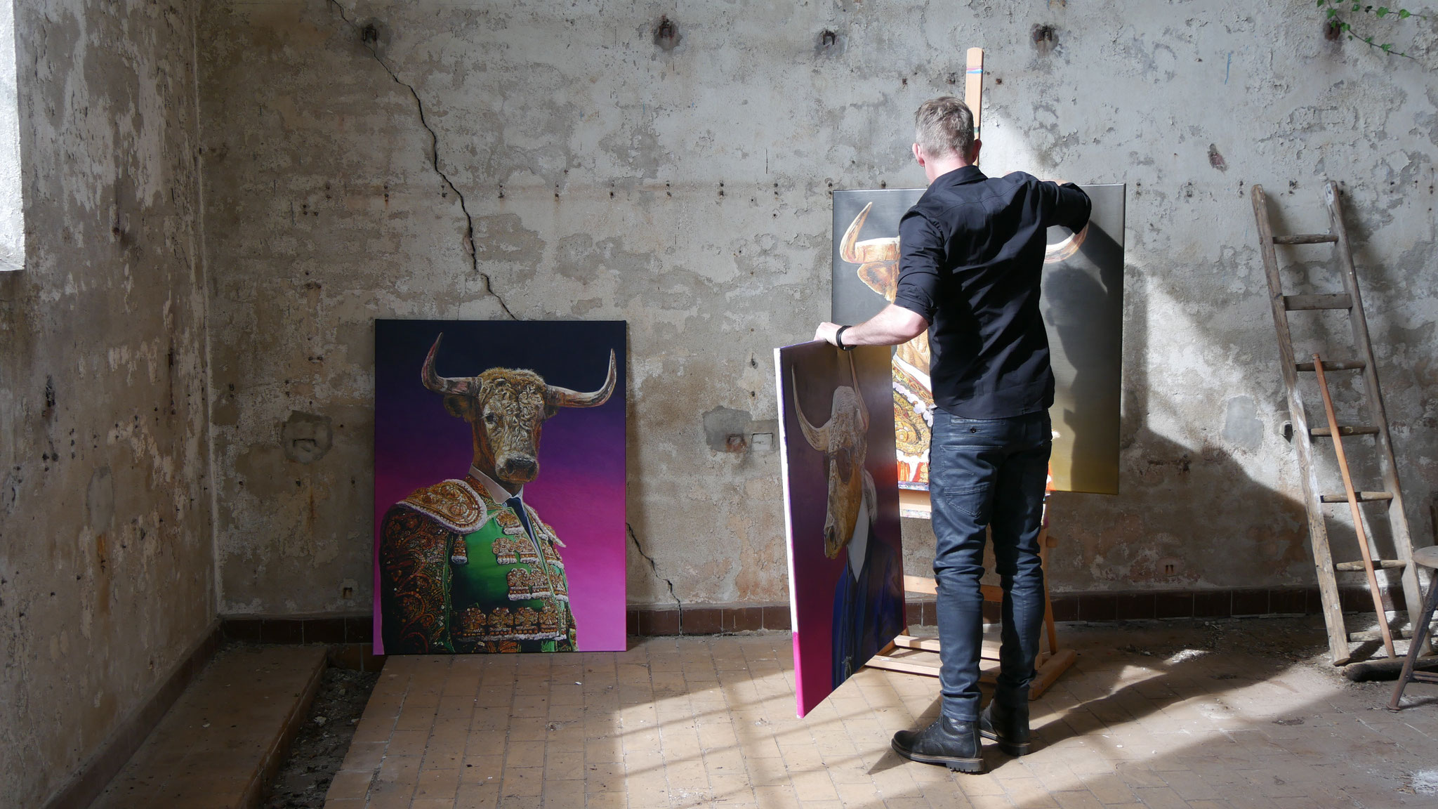 Nowadays Edwin is specialized in painting bulls. He shows these powerfull animals as human beings that you almost forget that they are not human. Edwin