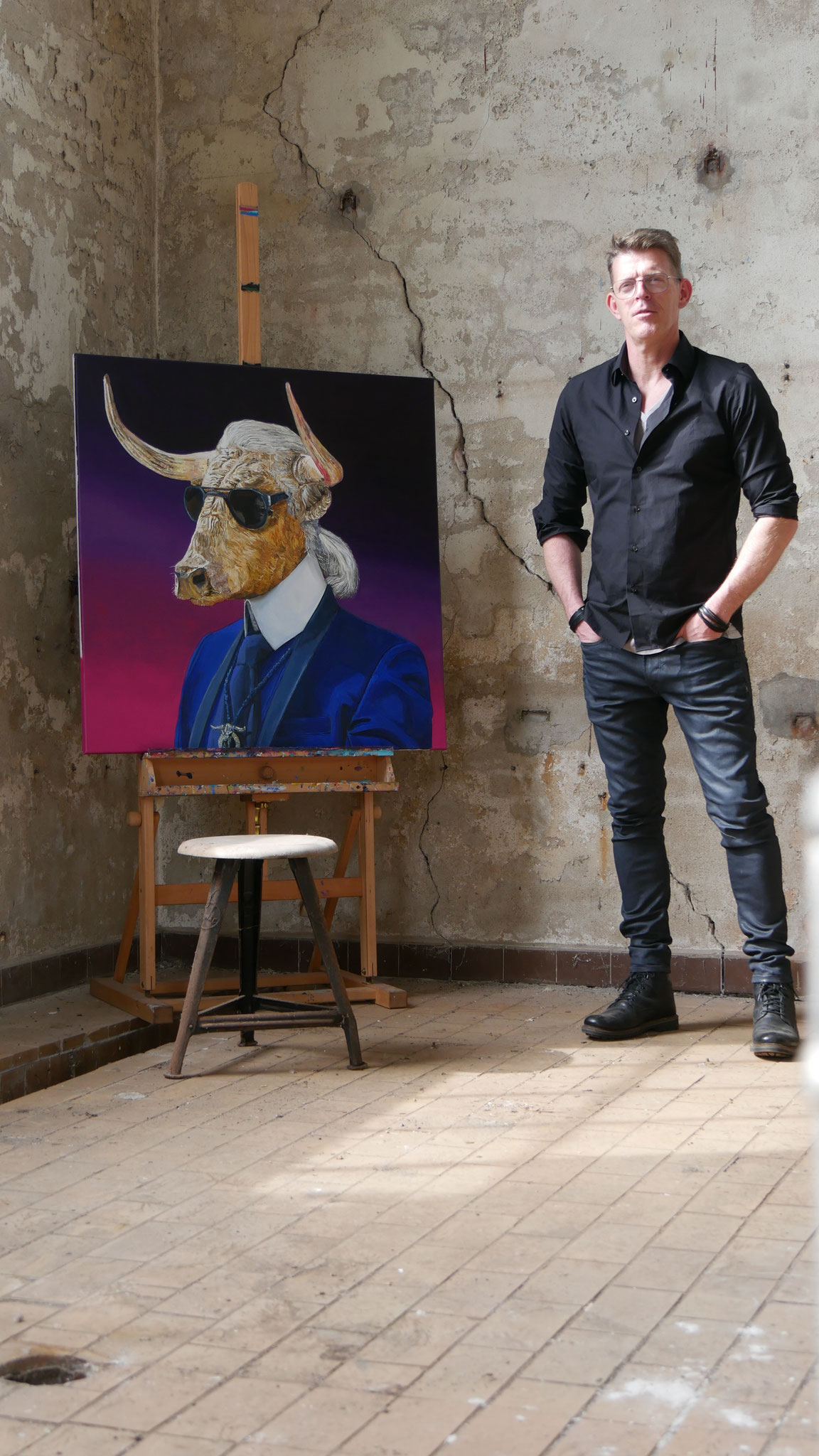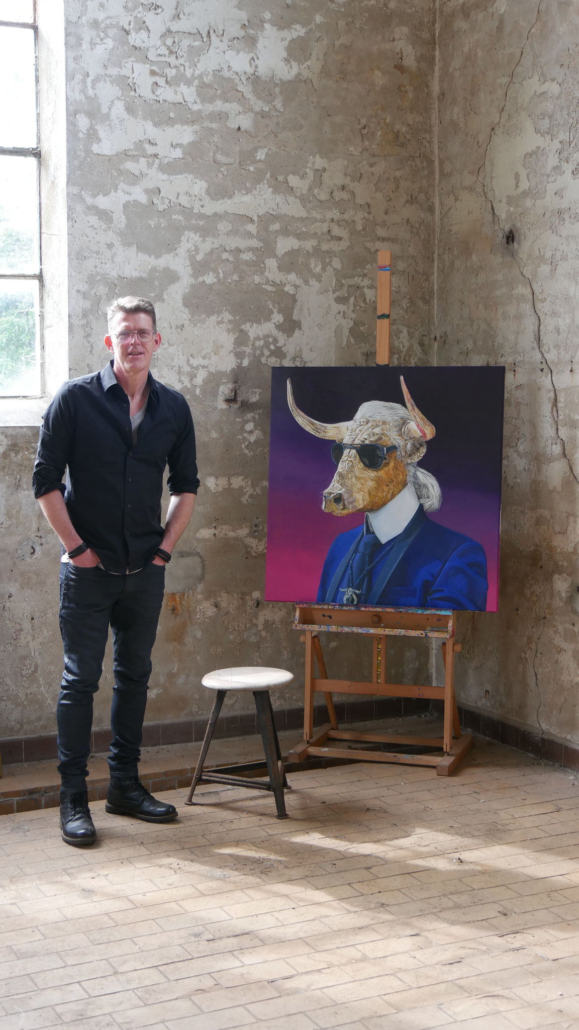 the bulls on large scale canvas. His roots as a Pop Art artist remain visible in his work. Whether you love or hate his work you can't walk pass one and not have an opinion about